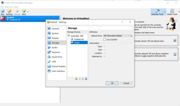 Typing “freebsd” in the name field automatically changes the others. Finally, click “Next”. In the following screens, set the memory, disk size, and other disk properties. The values here are mostly irrelevant, but for this exercise 4096MB RAM and 16GB disk were created accepting defaults for all other disk properties.