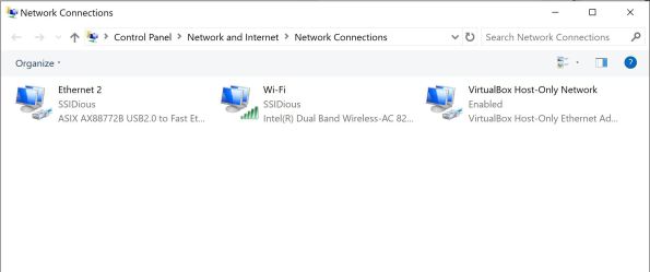 These steps are completed on the Windows host. Open the “Network and Internet” settings panel and click “Change adapter settings”. This exercise included the following connections: